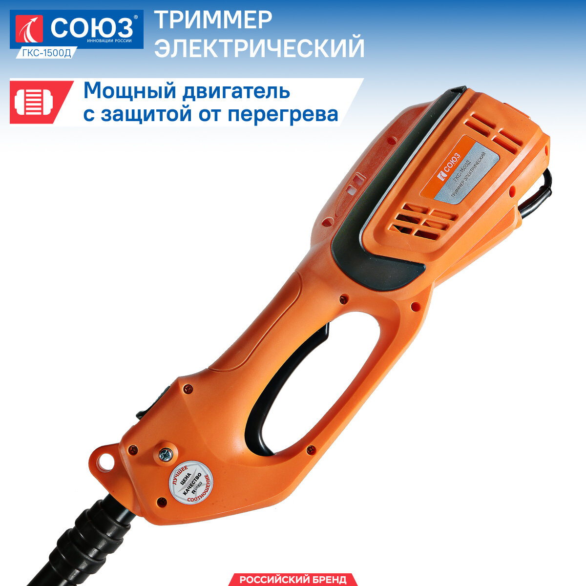 Триммер электрический Союз ГКС-1500Д (1500 Вт, D-образная ручка, ширина скоса 400 мм) информация: