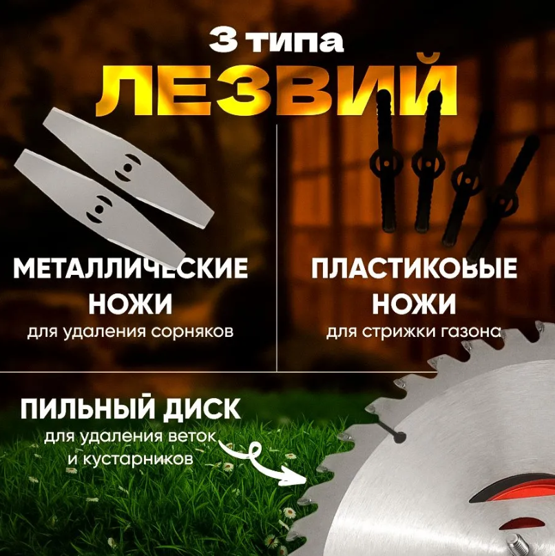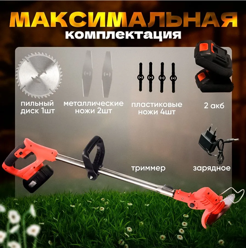 10 цен на Электрическая ручная косилка травы для дачи/ Триммер-газонокосилка аккумуляторный 2АКБ
