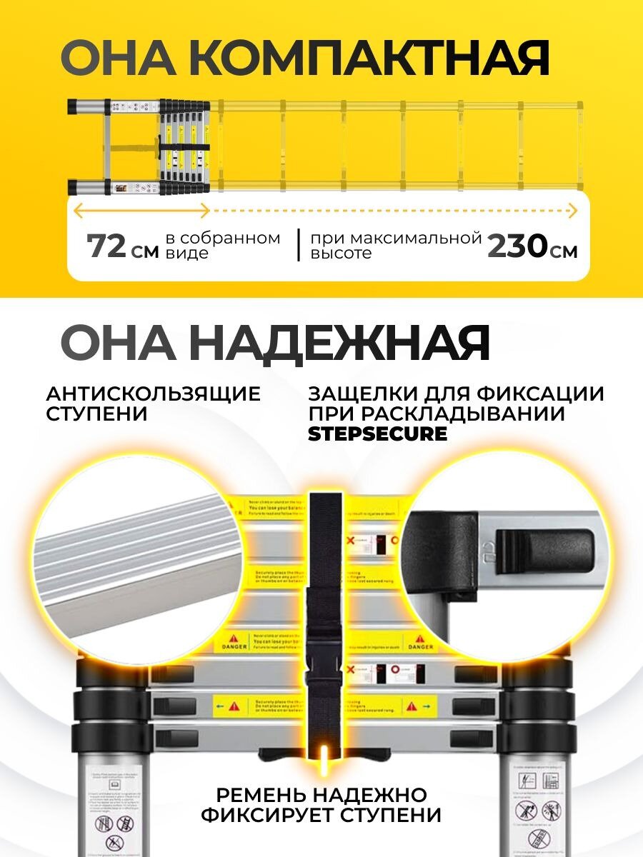 Телескопическая лестница алюминиевая. MANCRAFT 5,9 м информация:
