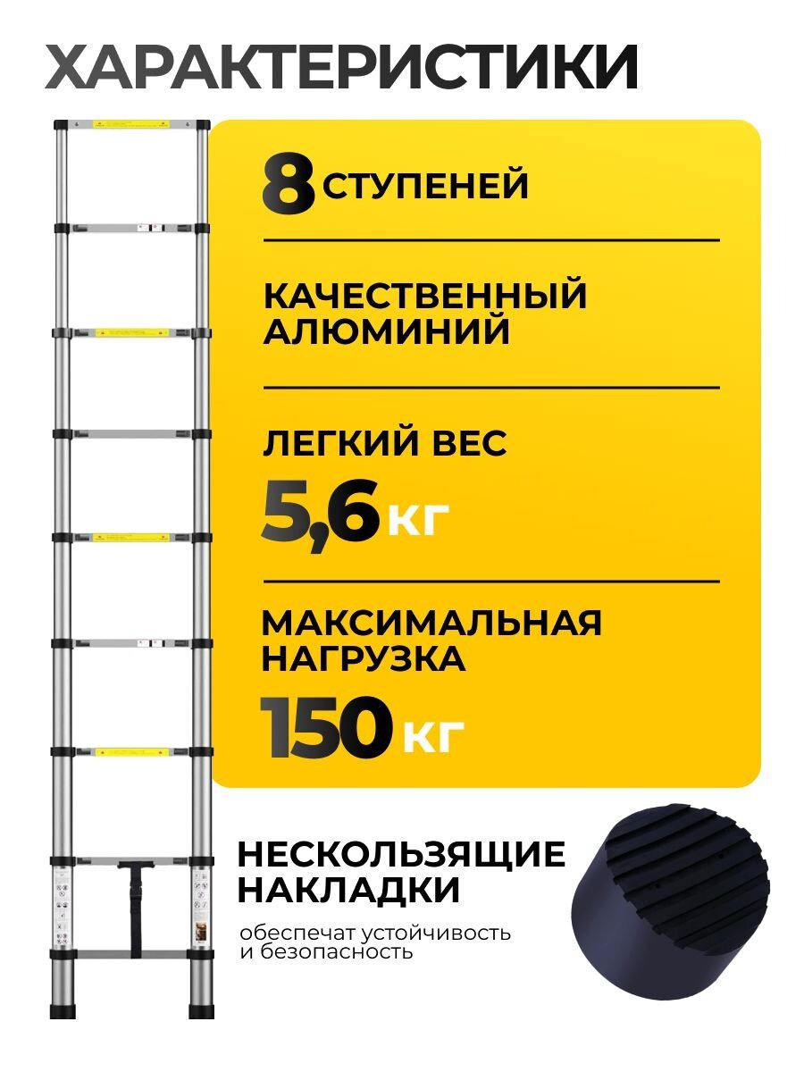 Телескопическая лестница алюминиевая. MANCRAFT 2,3 м информация: