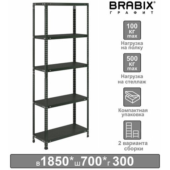10 цен на Стеллаж Brabix металлический "графит MS KD-185/30/70-5", лофт, 1850х700х300 мм, 5 полок, 291267, S240BR123593