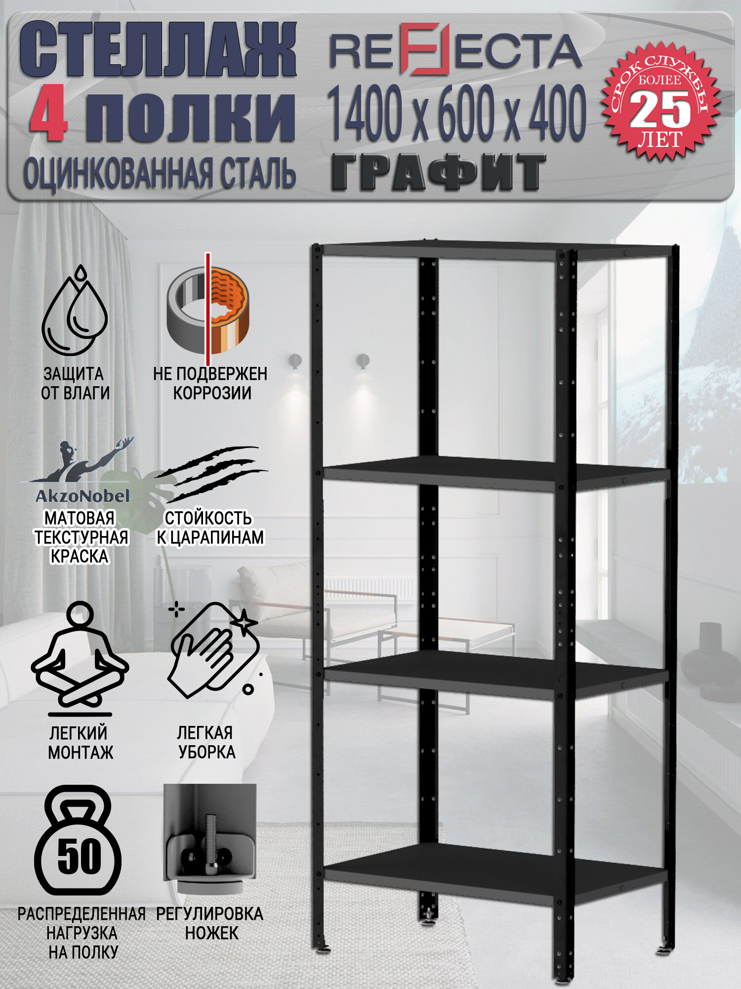 Стеллаж металлический 140x60x40. Четыре полки. Оцинкованный. RAL 7021 информация: