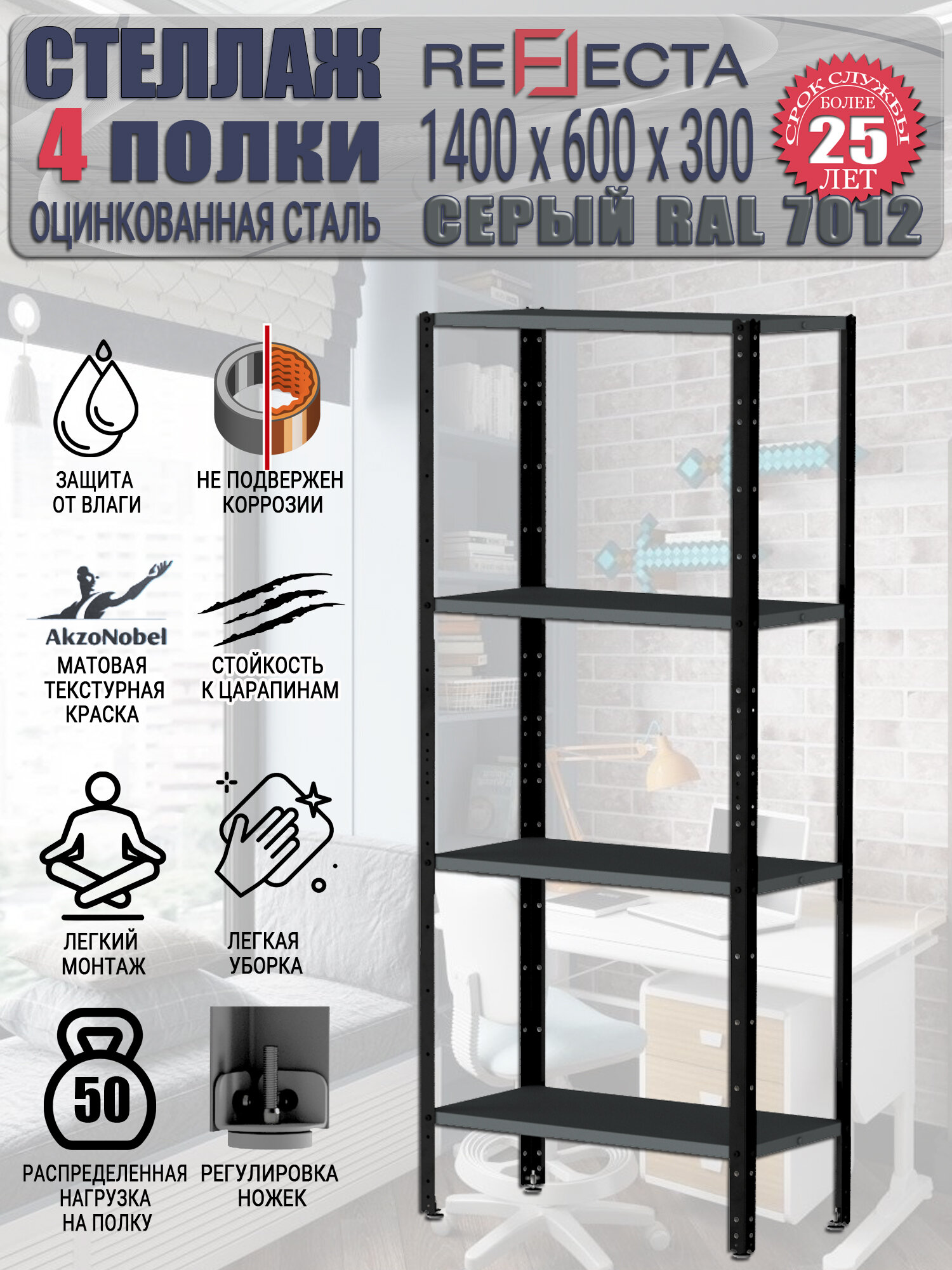 Отзывы на Стеллаж металлический 140x60x30. Четыре полки. Оцинкованный. RAL 7012