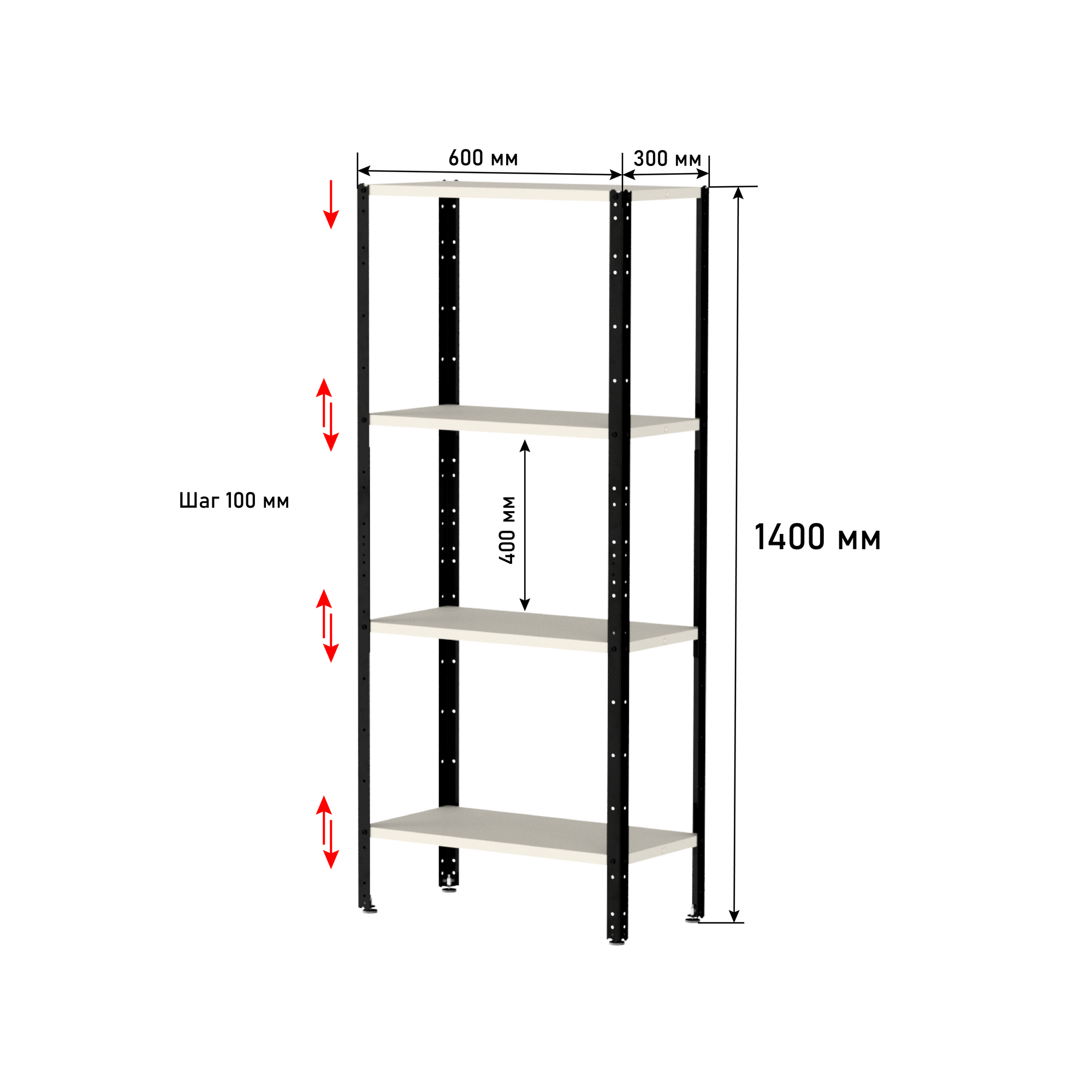 | Шаг регулировки высоты полки | 100 мм |
