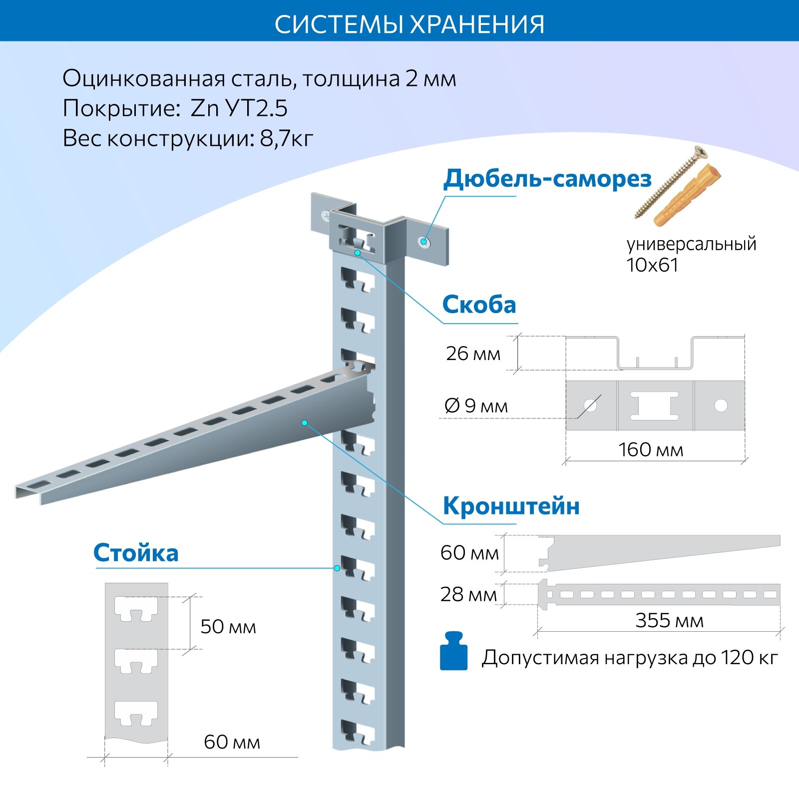 Настенный Металлический стеллаж Система Хранения для Дома или Гаража ДШВ 200см/35см/120см информация: