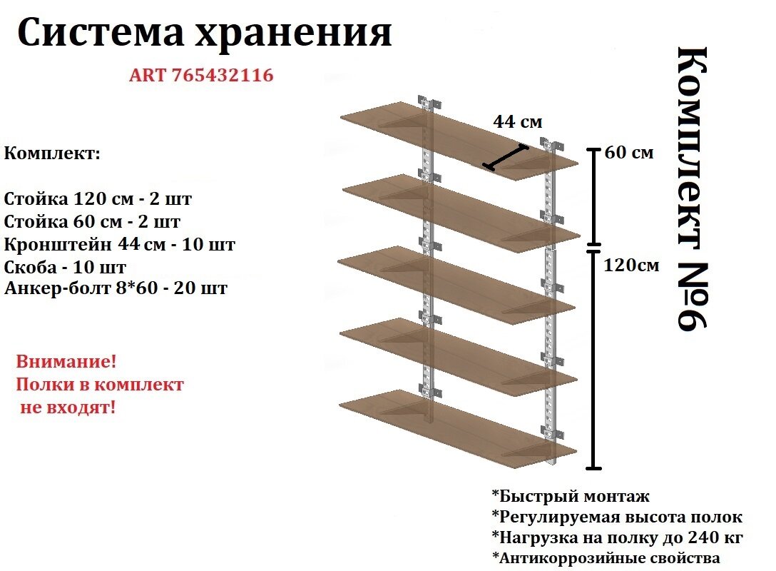 Стеллаж металлический / Комплект №6 / стеллаж металлический разборный / система хранения / гаражная система хранения информация: