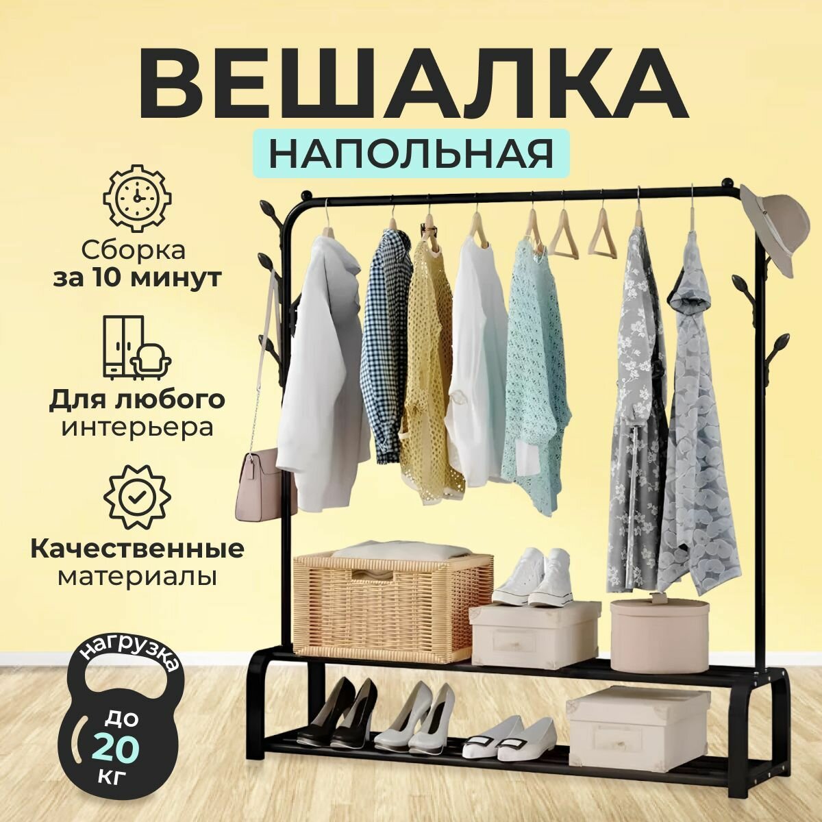 Отзывы на Вешалка напольная для одежды, Вешалка напольная рейл, 157x110x40 см, с обувницей