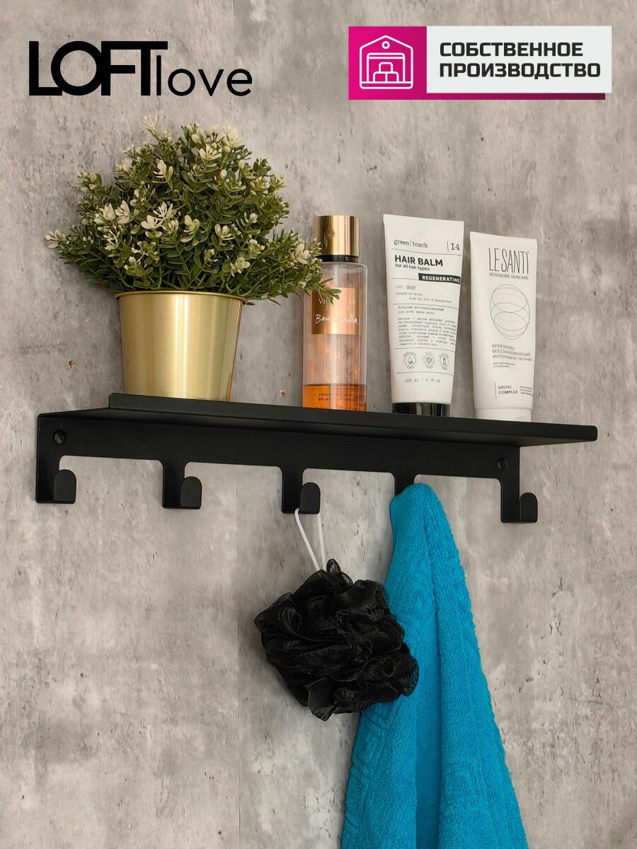 Отзывы на Полка с крючками, вешалка для ванной, кухни и прихожей 50см металл чёрная