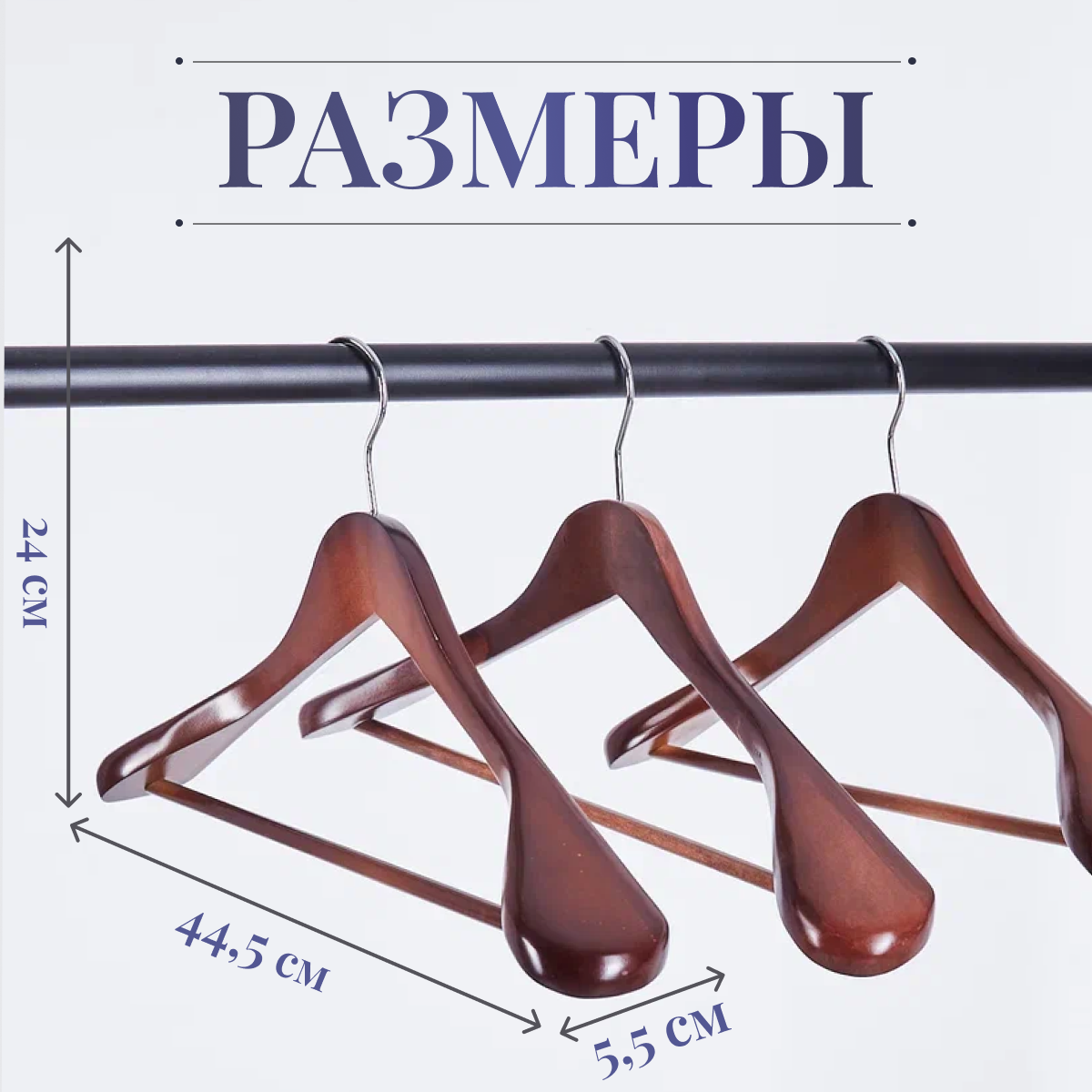 10 цен на Вешалки-плечики деревянные широкие для костюма, одежды, L-45см, цвет темное дерево, комплект 3шт