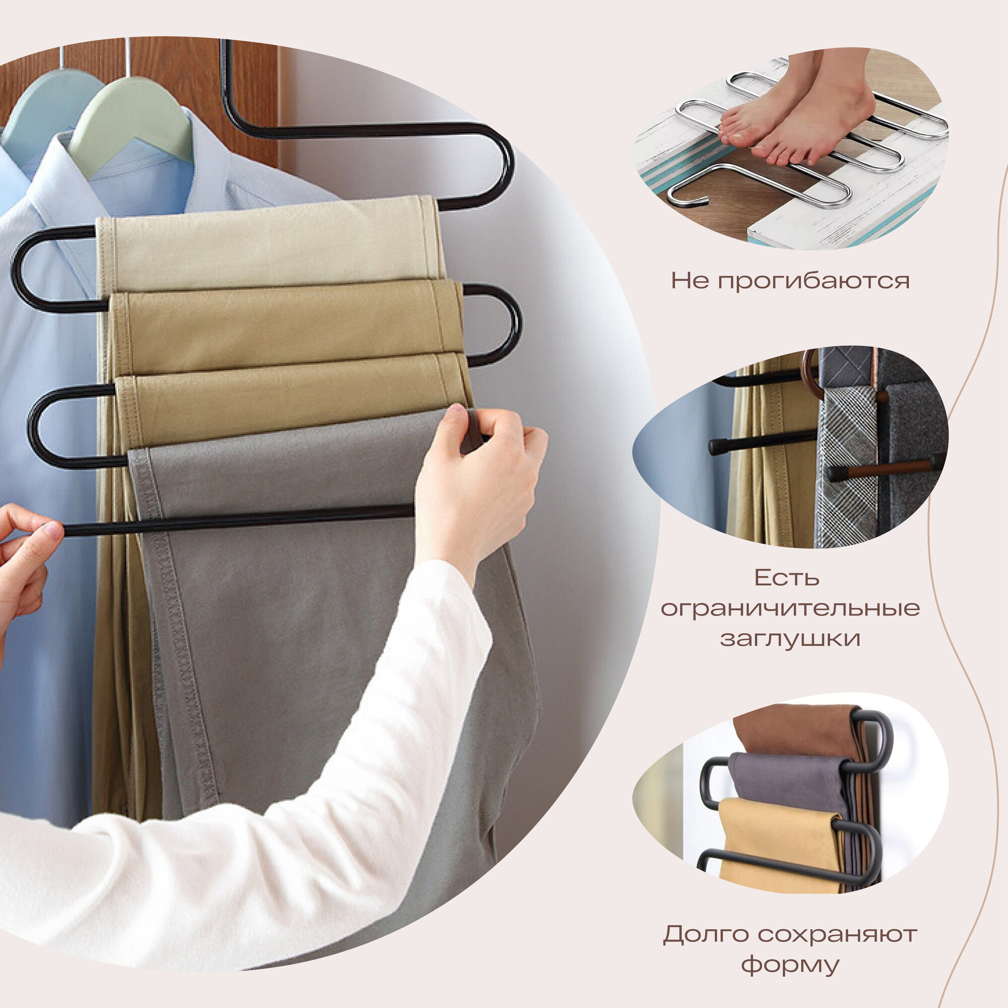 Отзывы на Вешалки для одежды / плечики / органайзер для брюк, нескользящие, 5 уровней, длина 31,5 см, цвет: чёрный, 3 штуки в комплекте