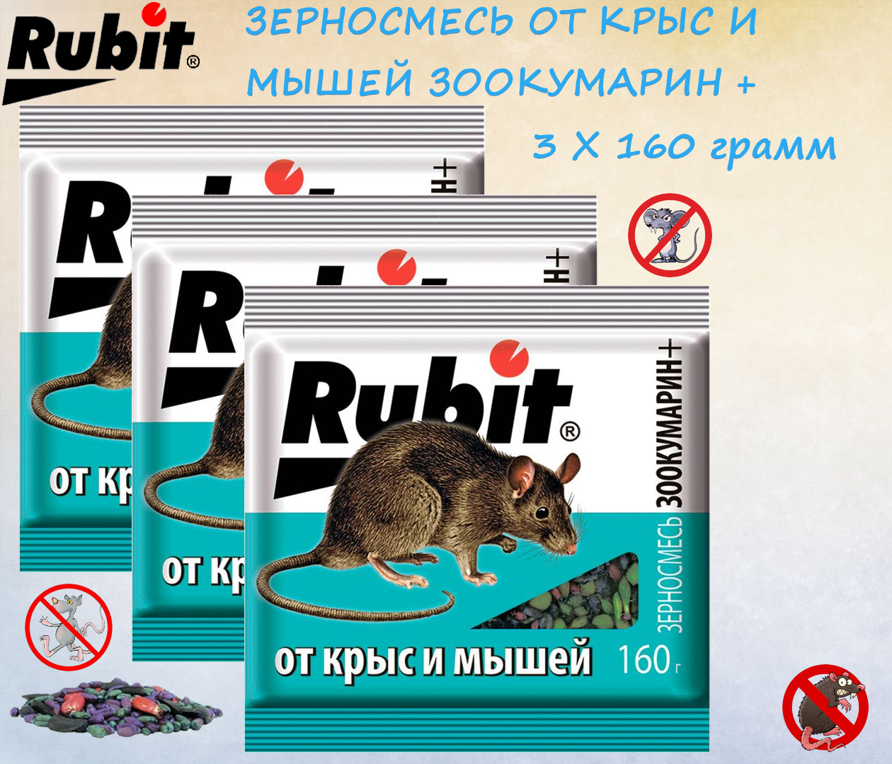 10 цен на Средство от мышей и крыс Rubit зерновая смесь ЗООКУМАРИН+ (3 x 160г) Рубит