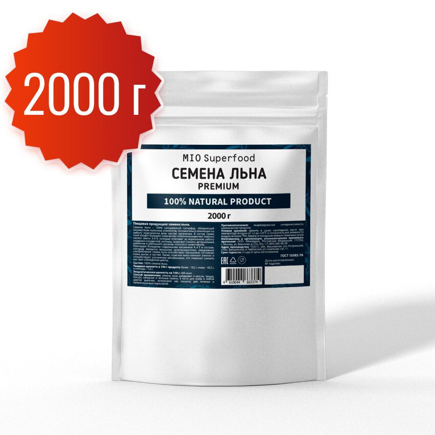 10 цен на Семена льна пищевые 2000 г, лен 2 кг Миосуперфуд, коричневые, суперфуд для правильного питания, для похудения, полезный натуральный продукт