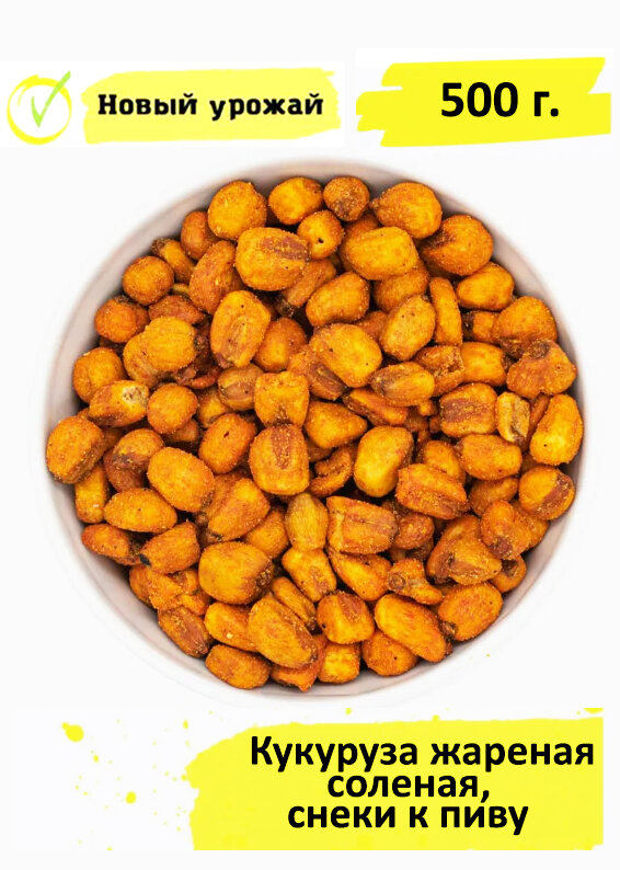 10 цен на Кукуруза жареная соленая со специями, снеки к пиву 500 г.