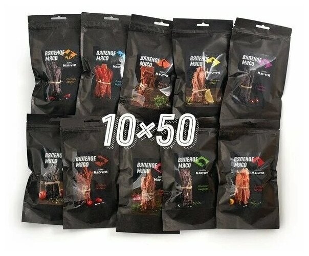Вяленое мясо Ранчо Мяссури Подарочный набор сушеное мясо в сумке, 10 видов, 500г информация: