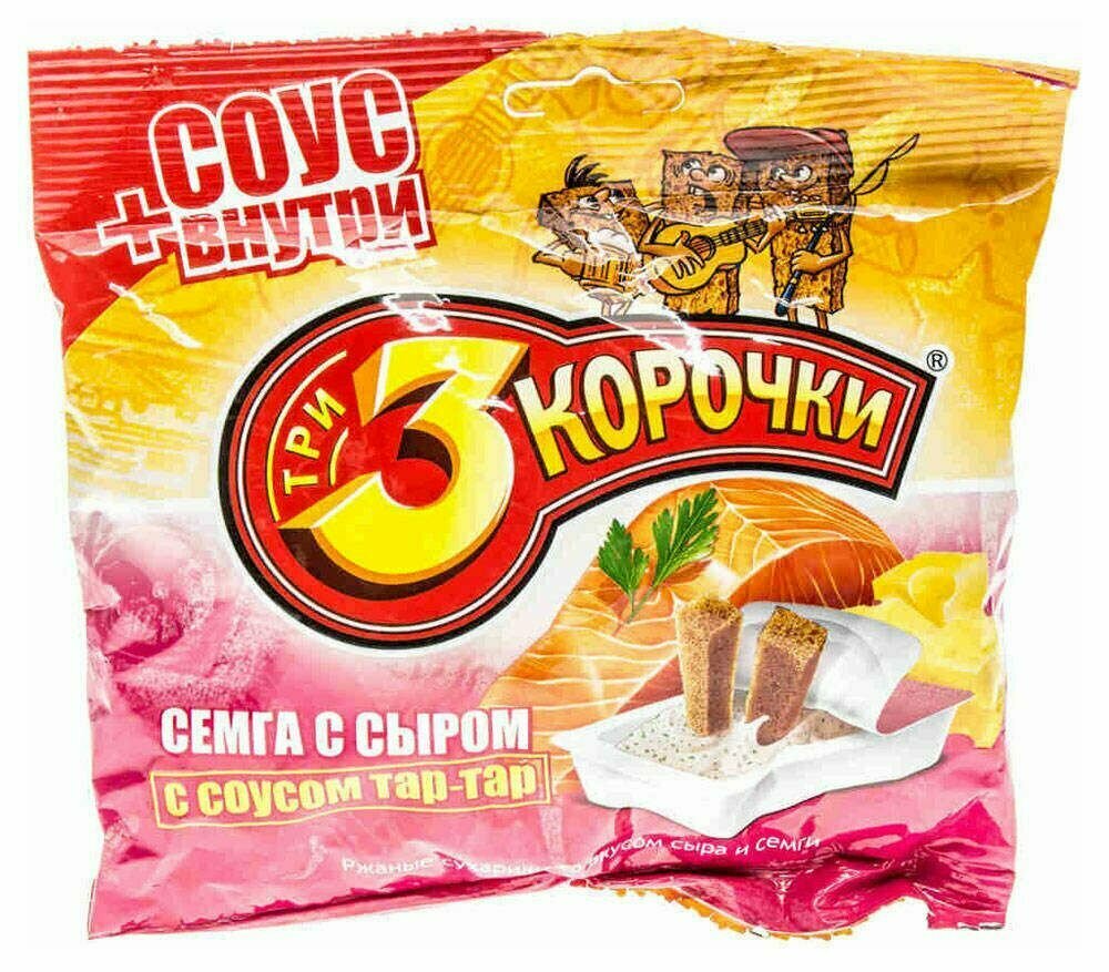 Отзывы на Сухарики ржаные 3 Корочки семга с сыром + соус Тартар, 60 г, 10 шт