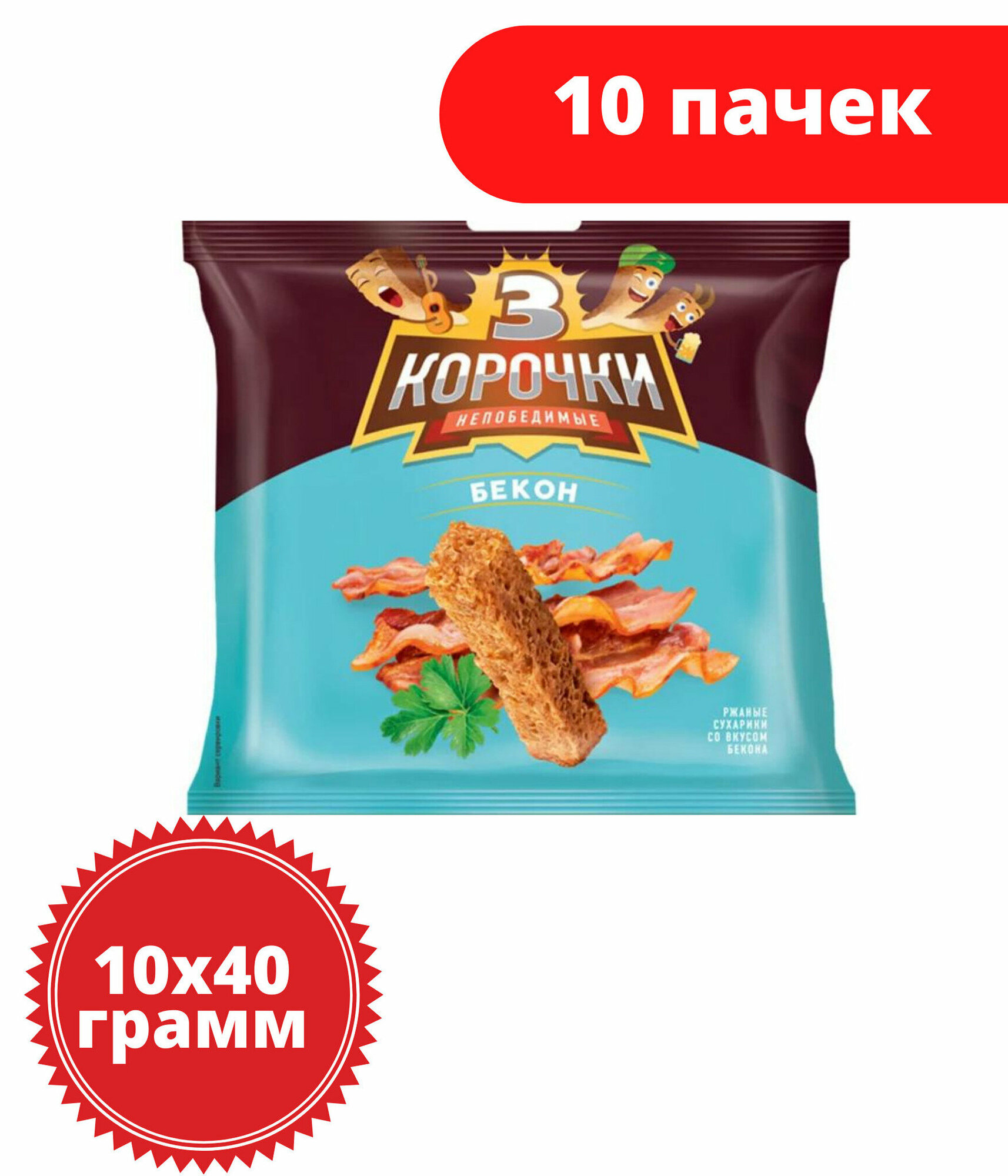 Сухари 3 Корочки, сухарики со вкусом бекона, 40 г, 10 пачек информация: