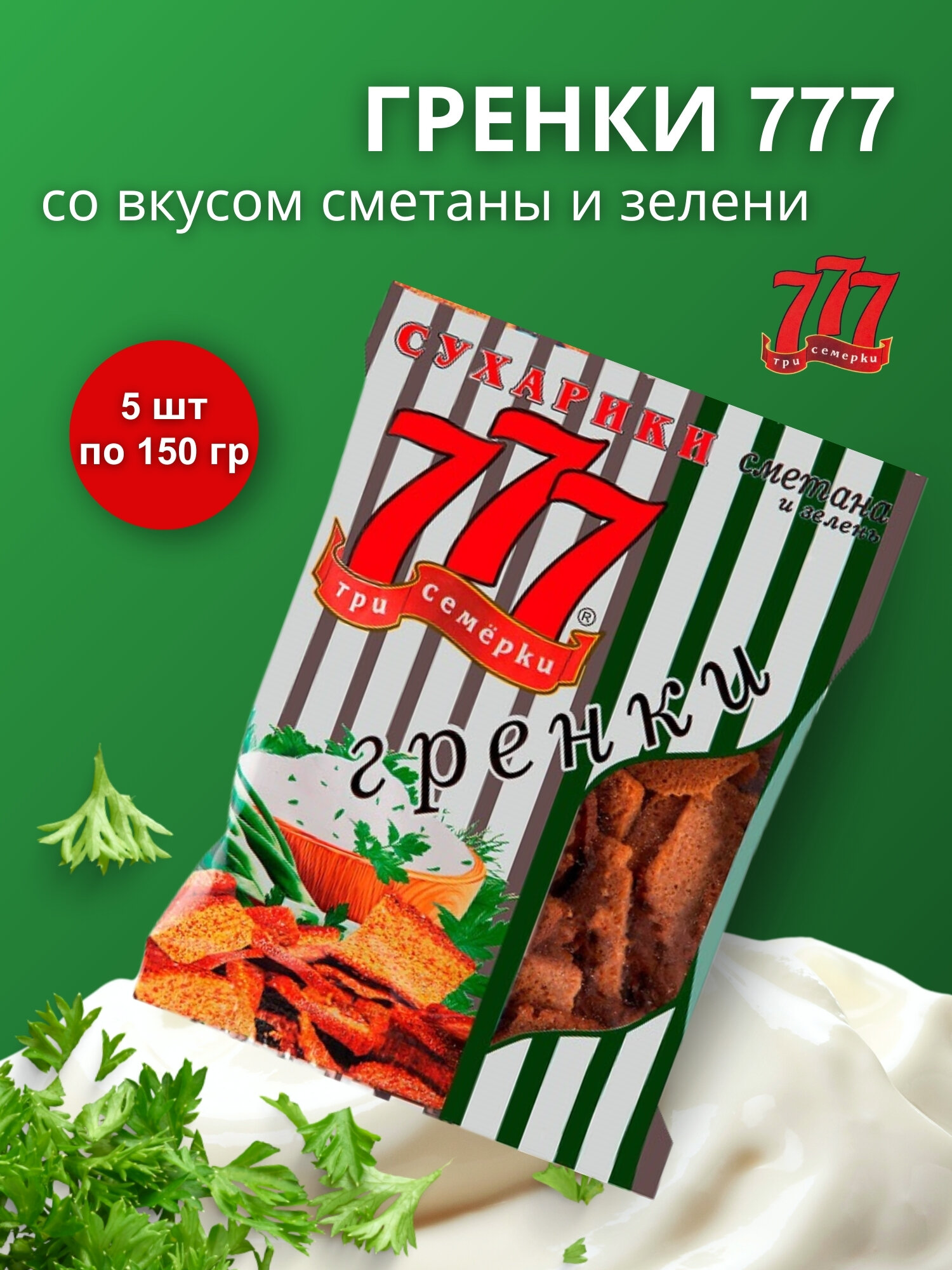 Отзывы на Гренки 777 со вкусом сметаны и зелени (пакет) 5 шт по 150 гр, пирсен 777