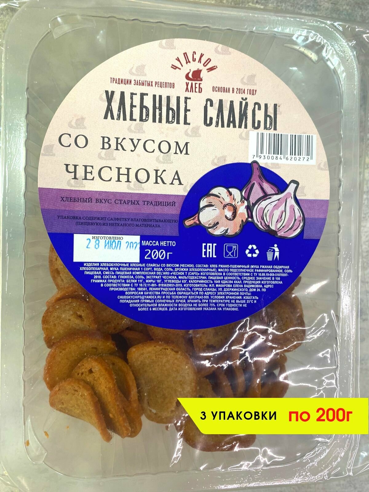 Сухари Хлебные слайсы со вкусом "Чеснок", 3 упаковки по 200 г. информация: