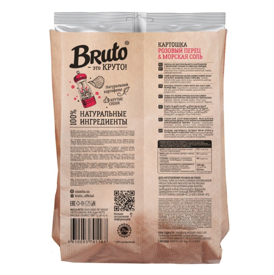 Картошка жареная с черным перцем и морской солью, 120г BRUTO (Россия) 390 ₽