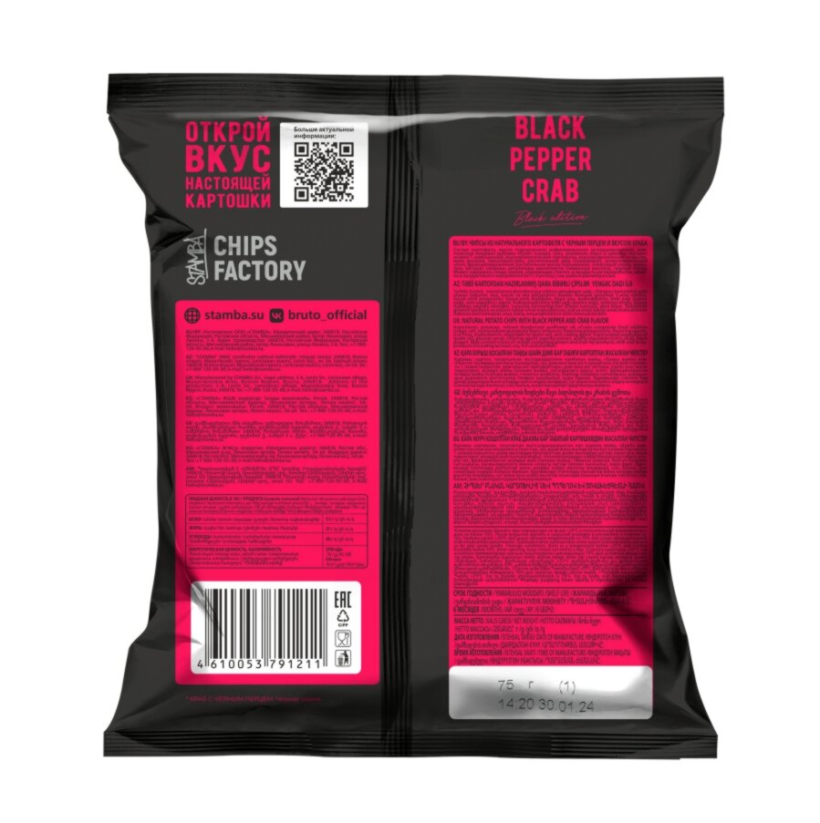 Чипсы картофельные Краб с черным перцем 75г, BRUTO (Россия) 328 ₽