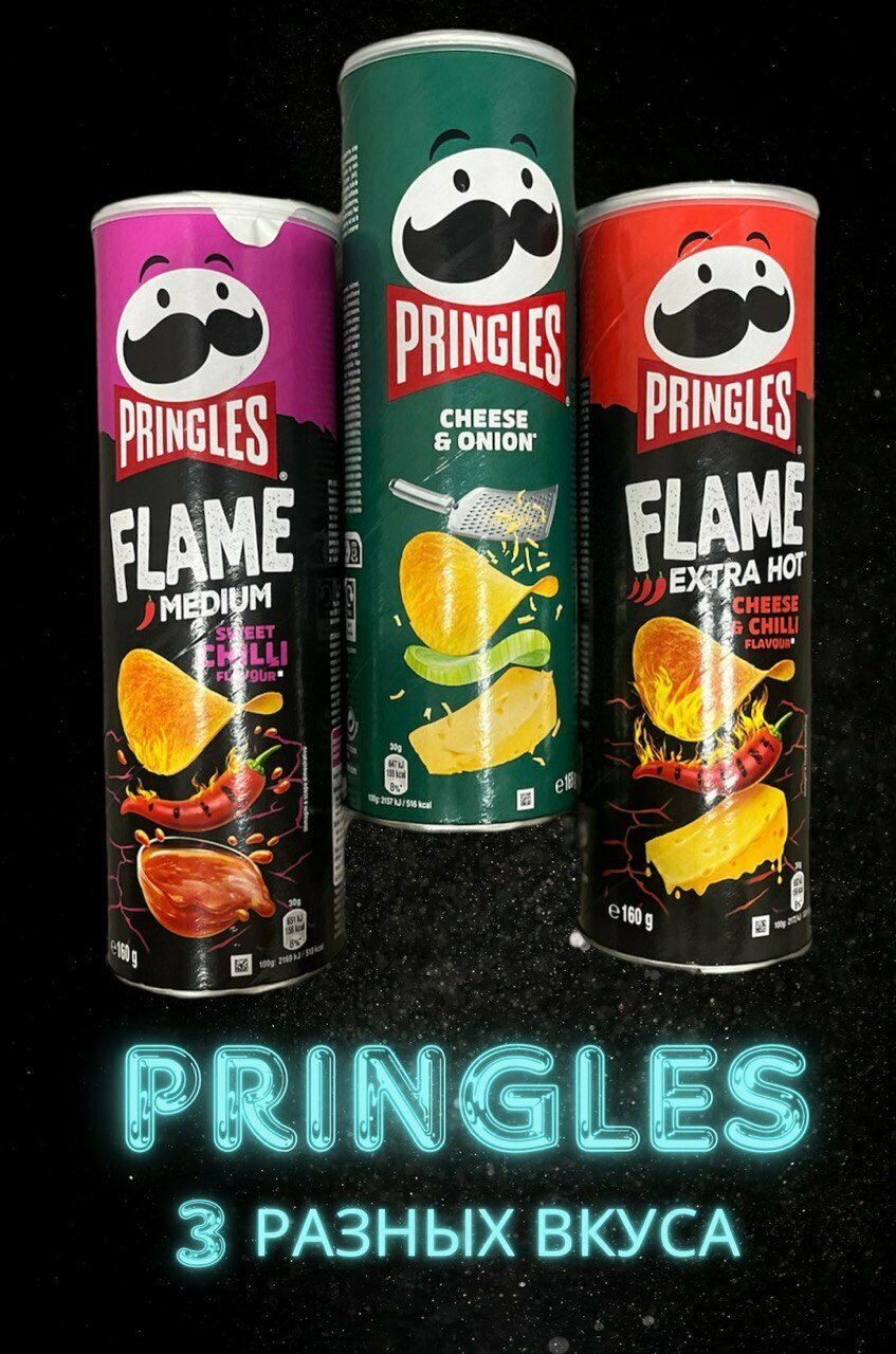 Pringles Принглс Набор вкусов (Flame Cheese&Chilli+Flame Sweet Chilli+Cheese&Onion|Чили и Сыр+Сладкий чили+Сыр и лук) информация: