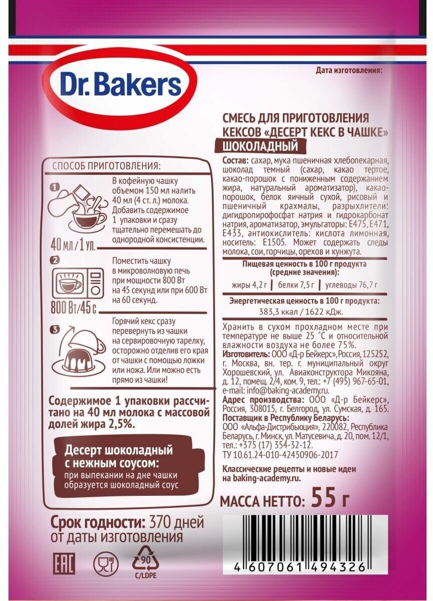 Кекс в чашке Шоколадный 5 шт. по 55г информация: