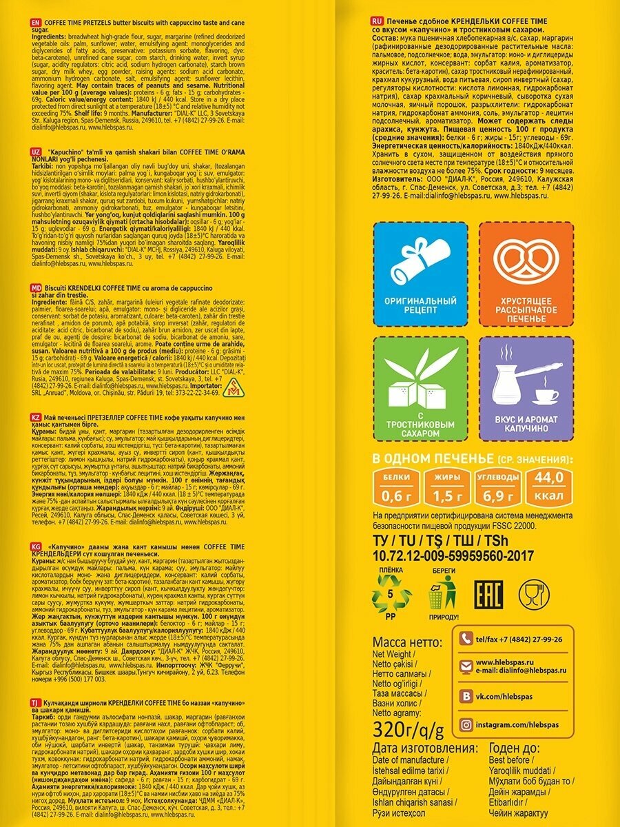 Крендельки "Капучино" Хлебный Спас, 4 упаковки по 320г. информация: