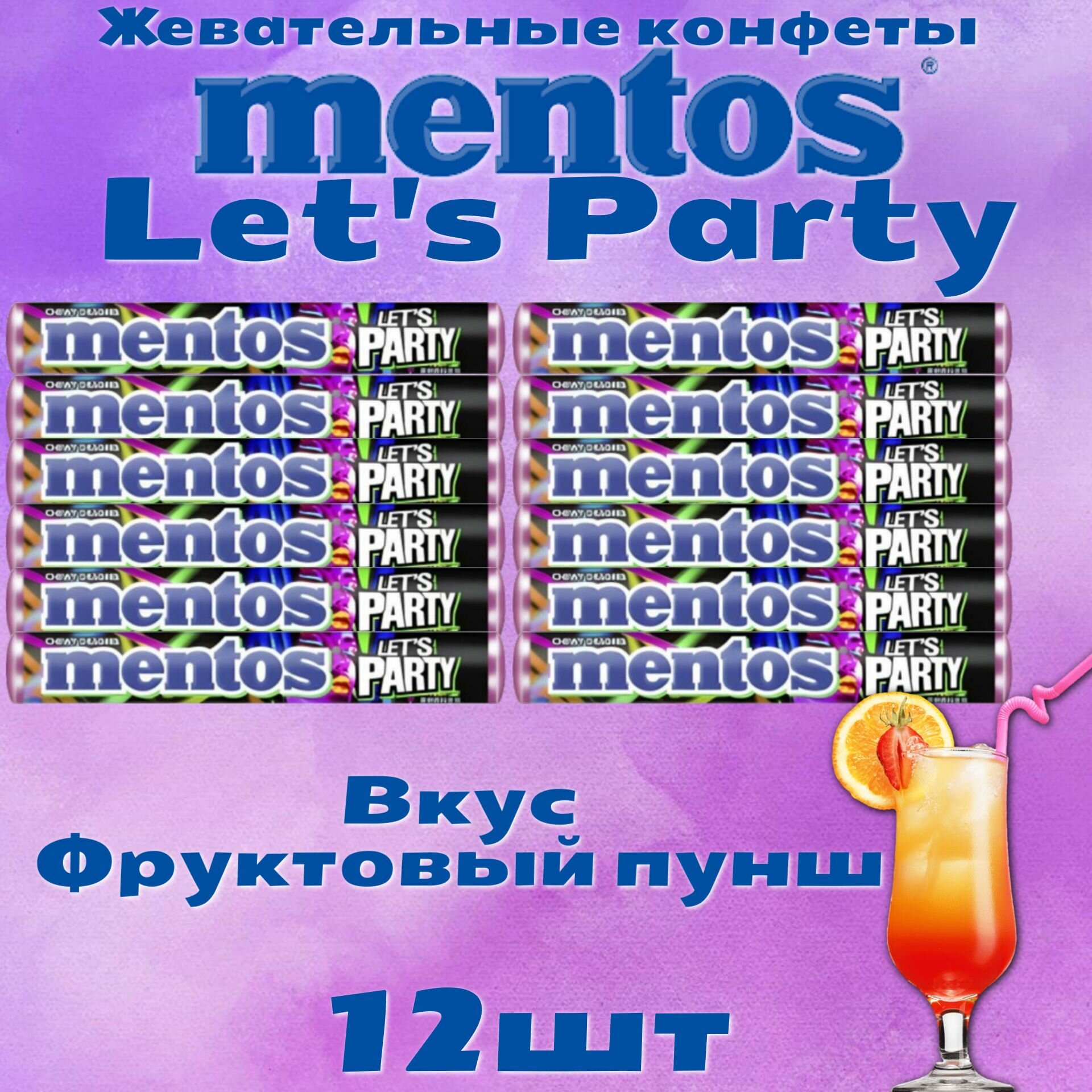 Жевательные конфеты Ментос Let'S Party 37,5гр 12 шт информация: