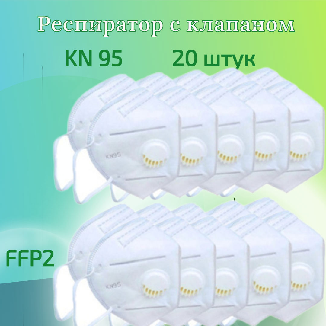 Респиратор белый медицинский KN 95 с клапаном вдоха, 20 штук в упаковке. информация: