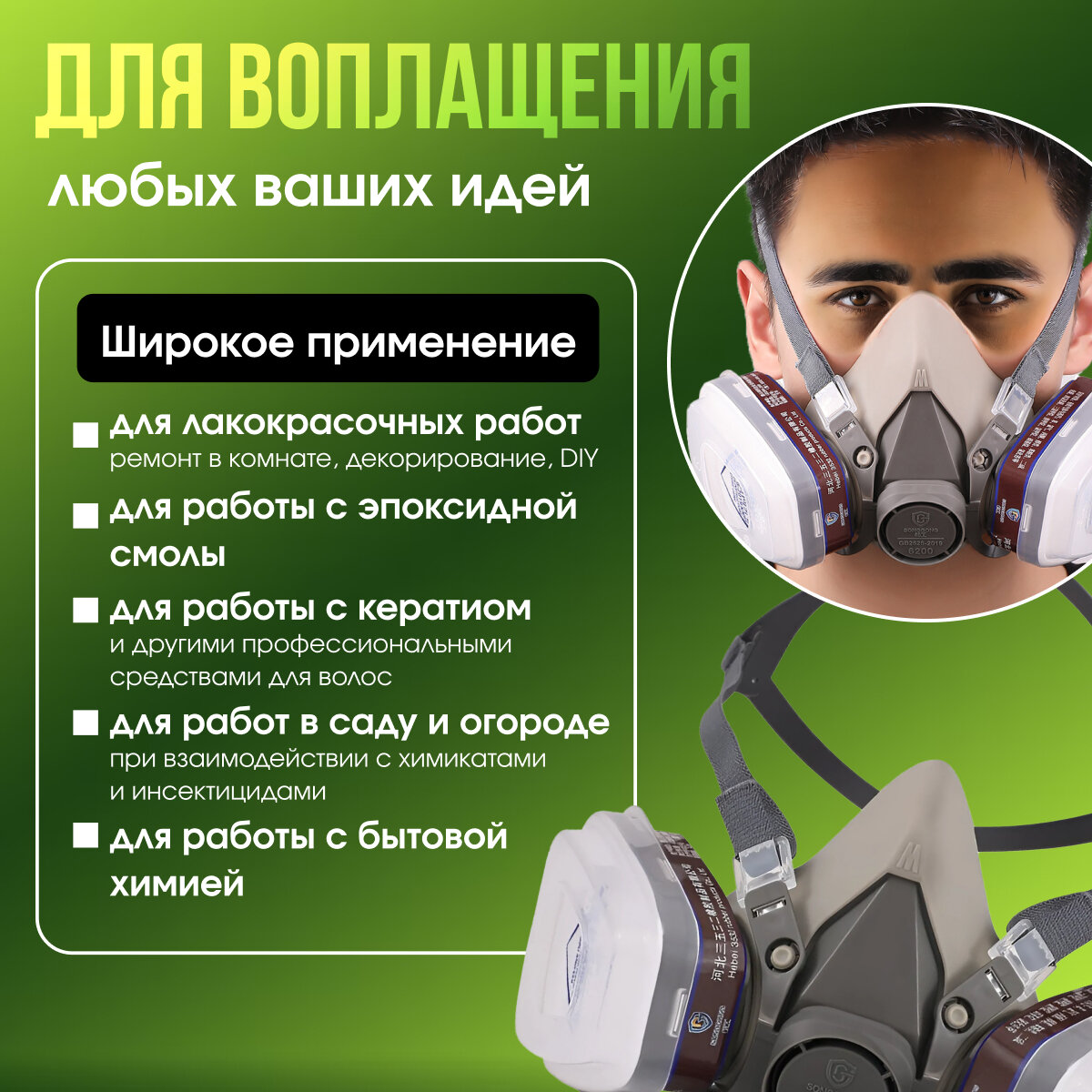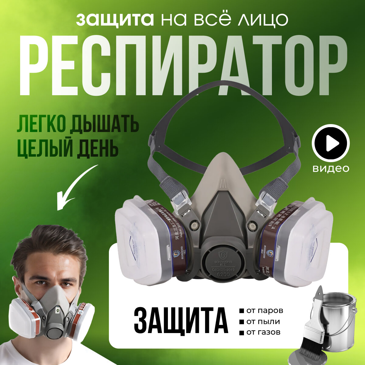 Отзывы на Профессиональный респиратор противогаз маска защитная 6200 замена 3М с угольным фильтром от химии, Zur-Kibet