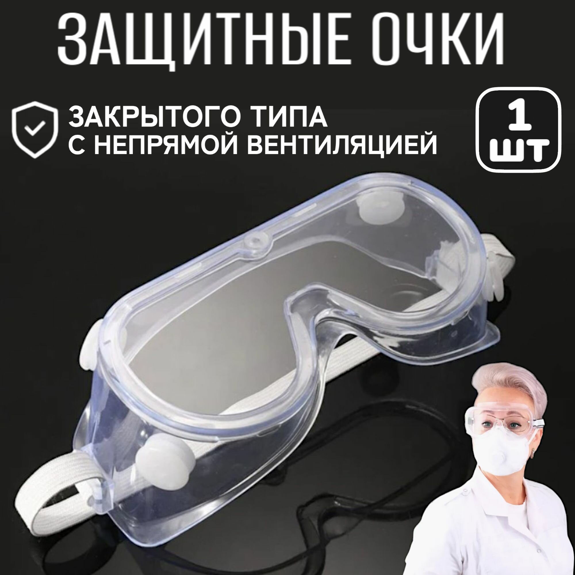 1шт! Очки защитные прозрачные закрытого типа с вентиляцией / цвет: прозрачный информация:
