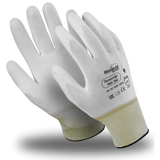 Перчатки полиэфирные Manipula полисофт, полиуретановое покрытие (облив), размер 9 (L), белые, MG-166 информация: