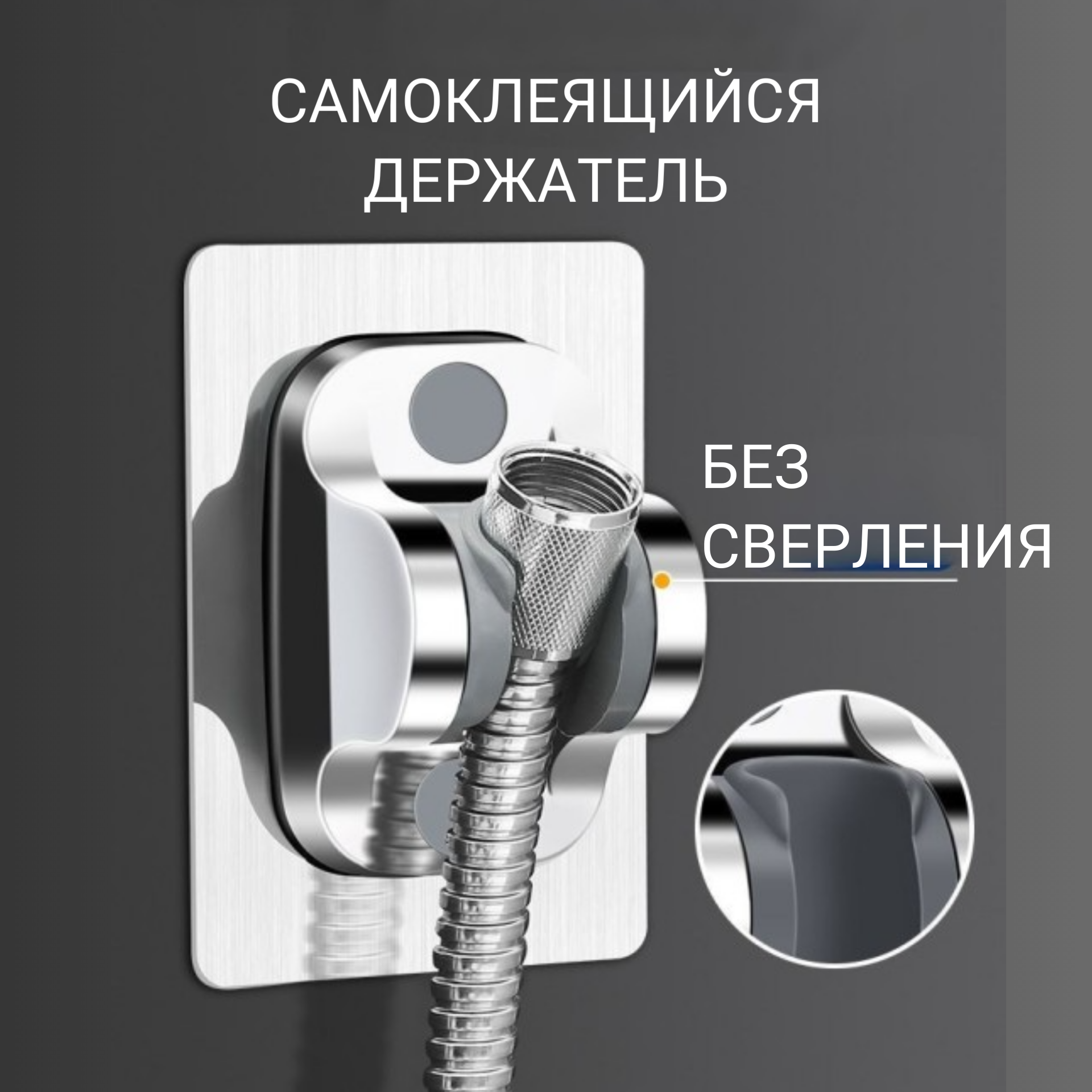 Отзывы на Держатель для душевой лейки , для душа на стену в душ или ванну без сверления самоклеящийся хром
