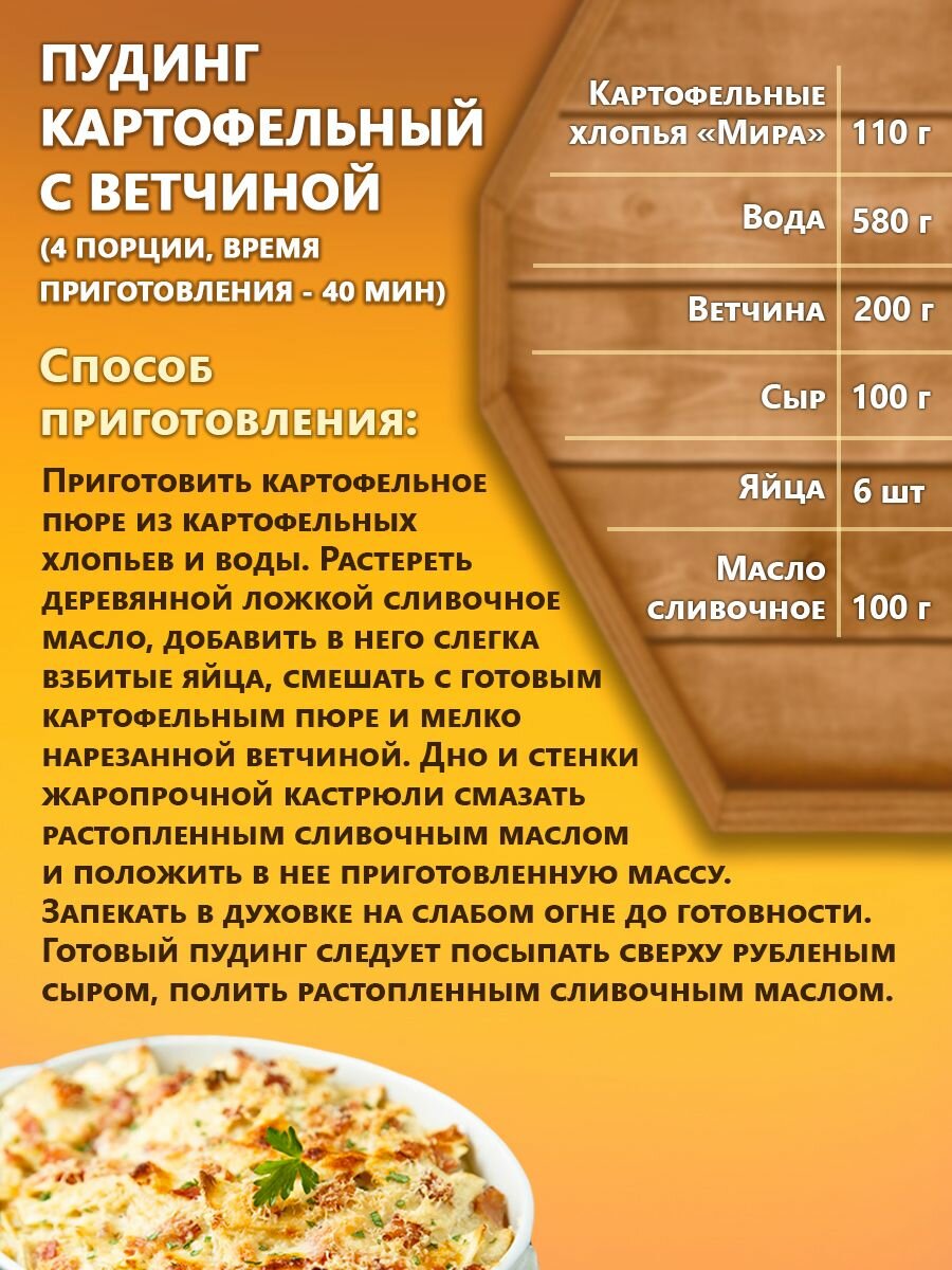 | Дополнительная информация | 1 пакет - 1 кг; пюре картофельное сухое - 1 кг |