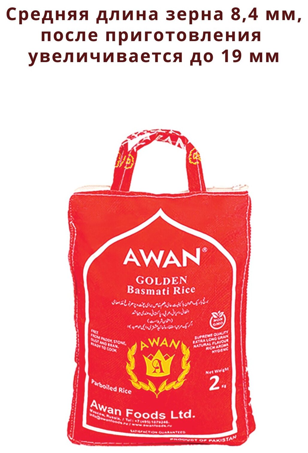 Рис басмати пропаренный Golden Awan Аван 2кг информация: