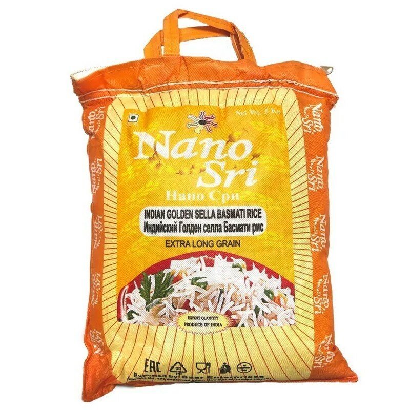 10 цен на Рис басмати индийский Голден Селла пропаренный Nano Sri, 5 кг
