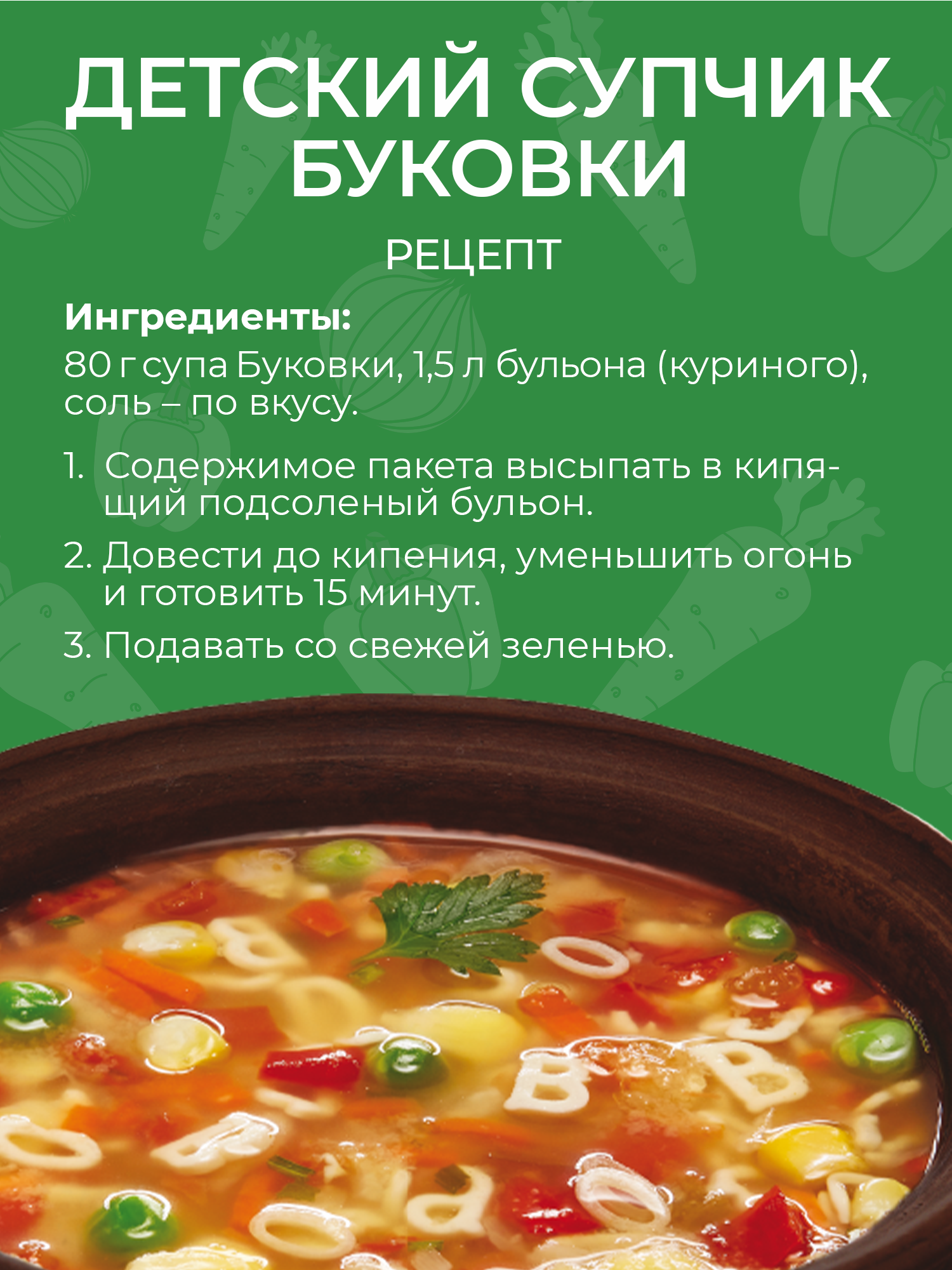 Детские супы Yelli kids 12 шт. (Супчик Буковки 6*80г, Супчик Гороховый 6*100г) информация: