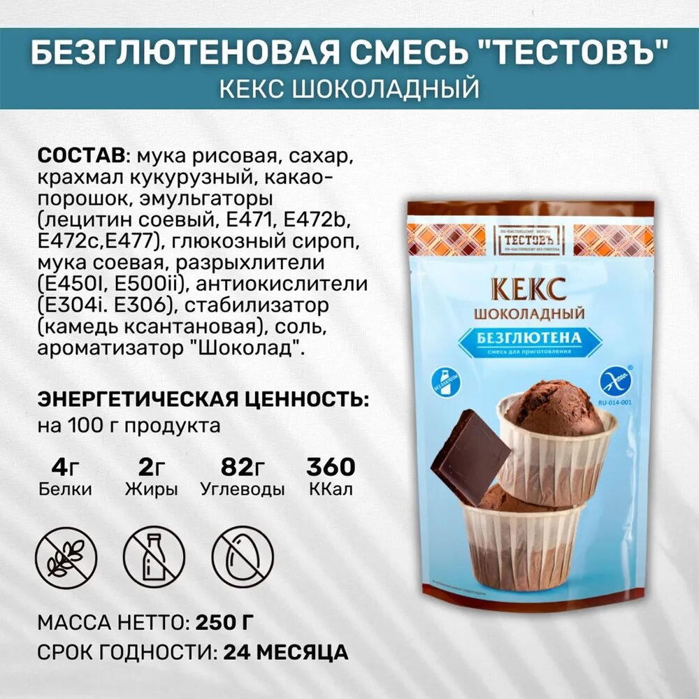 Смесь для выпечки без глютена тестовъ Кекс шоколадный 3 шт по 250г информация: