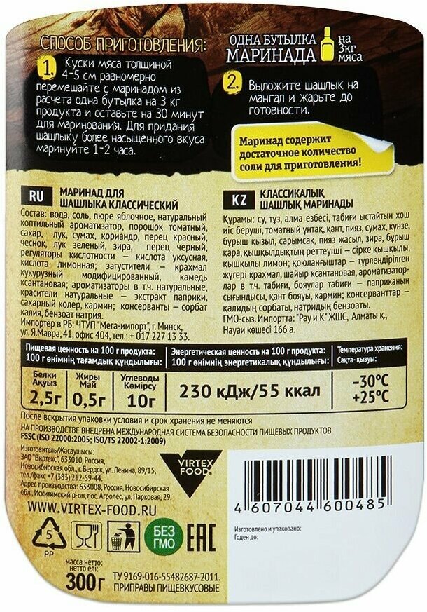 Костровок Маринад классический для шашлыка, 300 г, 12 шт информация: