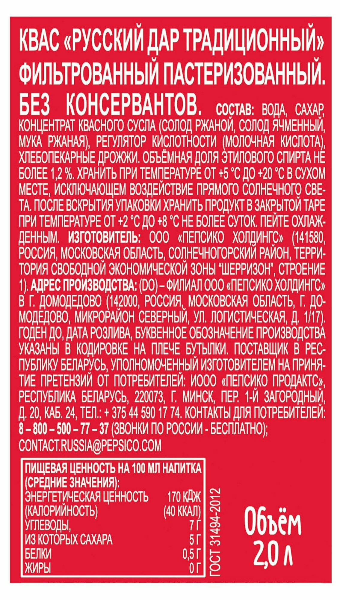 Квас Русский Дар ферментированный, 2 л, 3 шт информация: