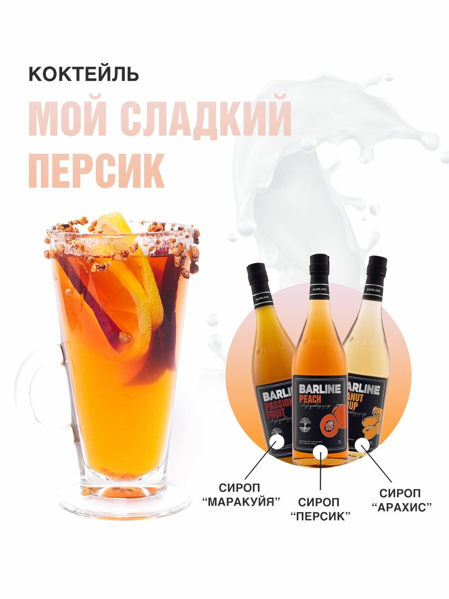 Сироп Barline Персик (Peach), 1 л, для кофе, чая, коктейлей и десертов, пластиковая бутылка, Барлайн информация: