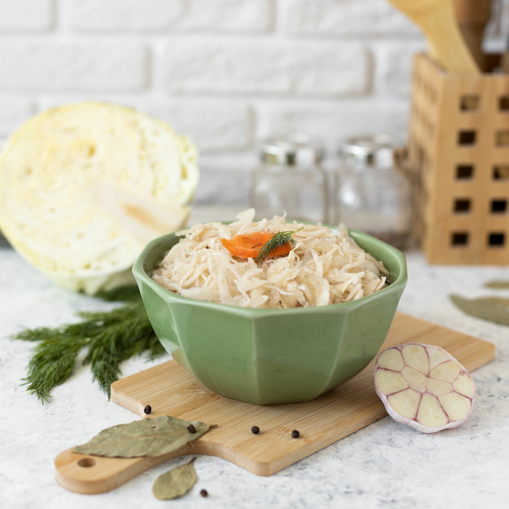 | Состав | Капуста свежая, сахар, соль, лук репчатый, морковь свежая, зелень, лимонная кислота (регулятор кислотности), чеснок, специи: лавровый лист, перец душистый, перец черный горошек. |