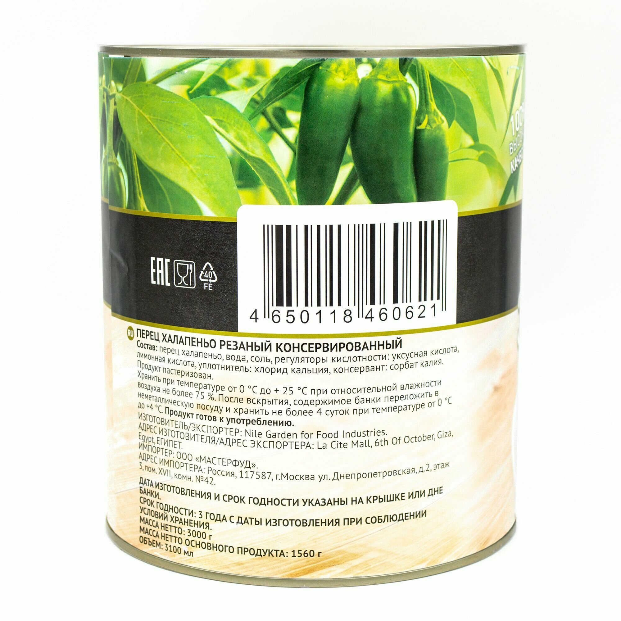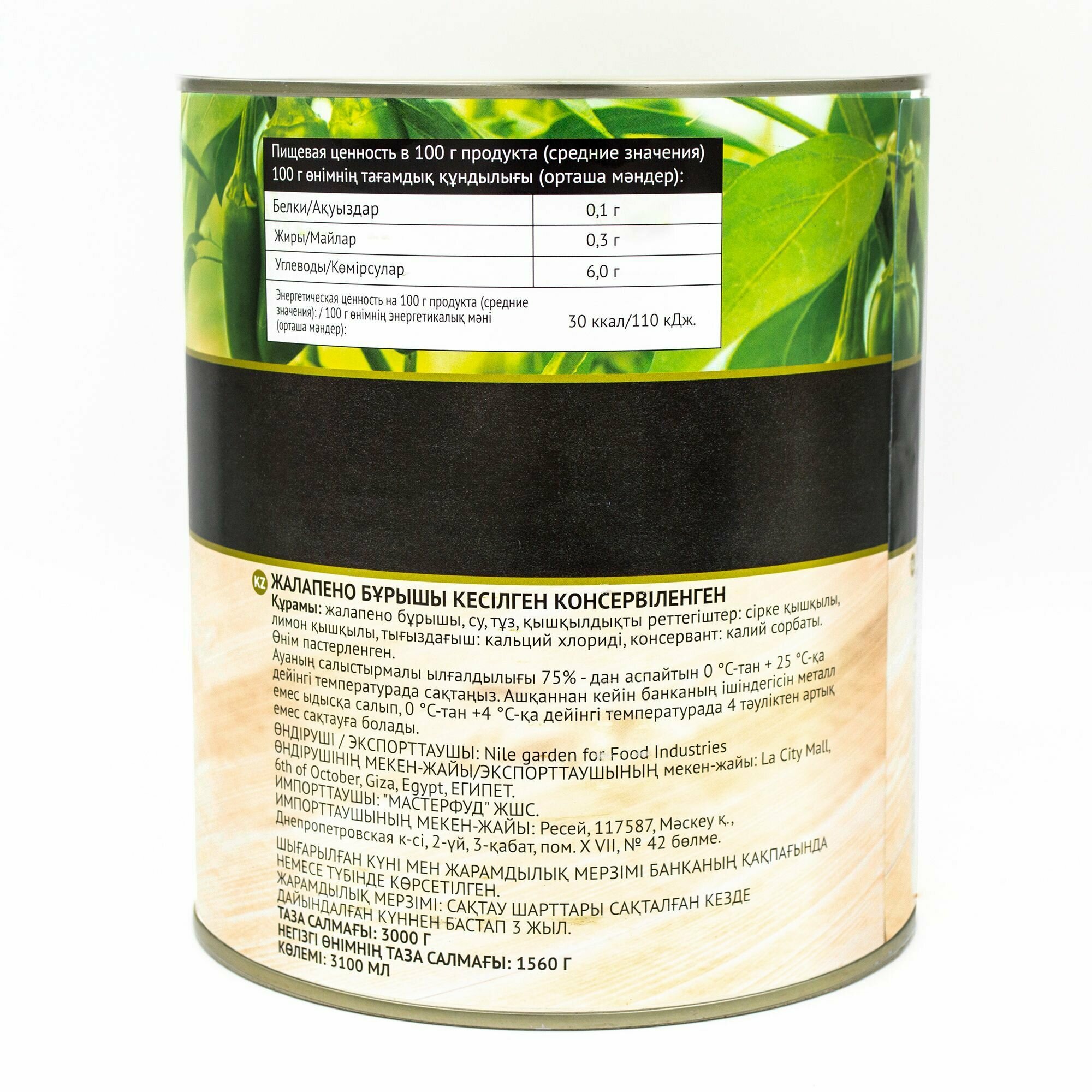 | Состав | перец халапеньо, вода, соль, регуляторы кислотности: уксусная кислота, лимонная кислота, уплотнитель: хлорид кальция, консервант: сорбат калия. |