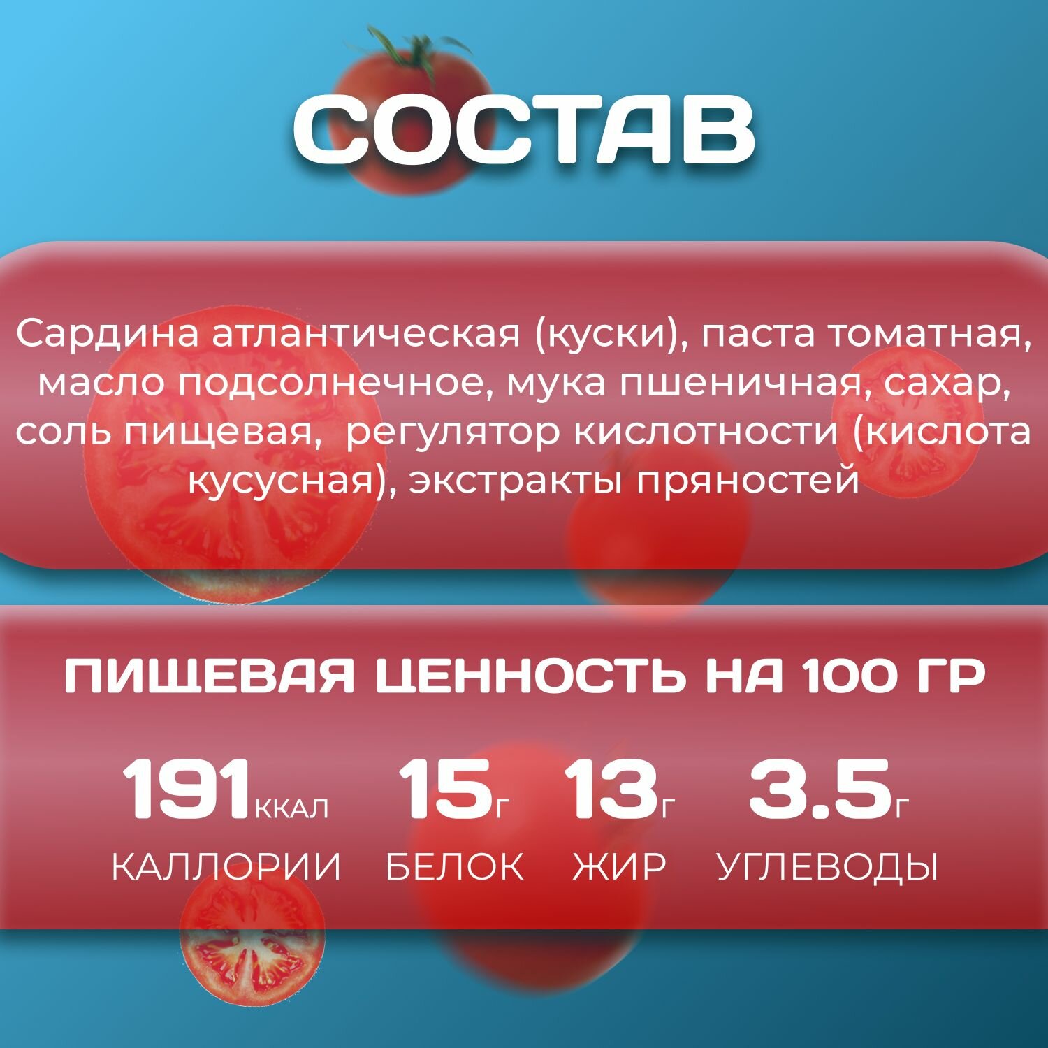 | Вид рыбы | килька / сардина / сельдь / скумбрия |