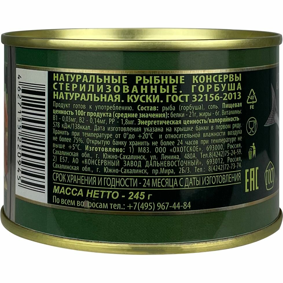 Горбуша натуральная дальневосточная Жемчужина Сахалина ГОСТ Росрезерв 245 г