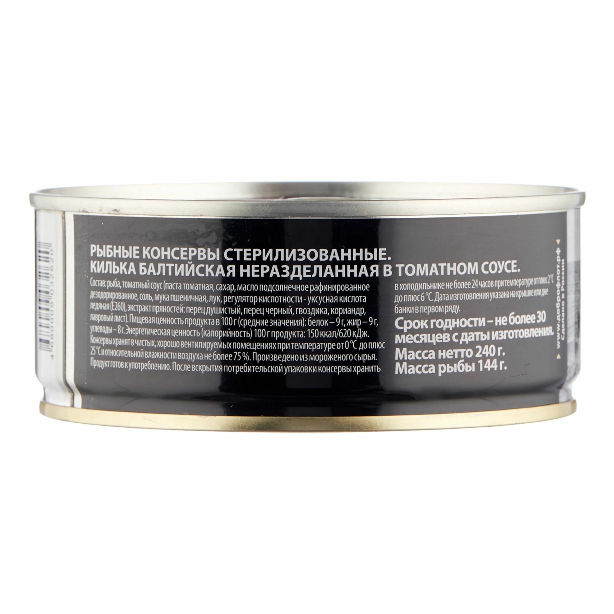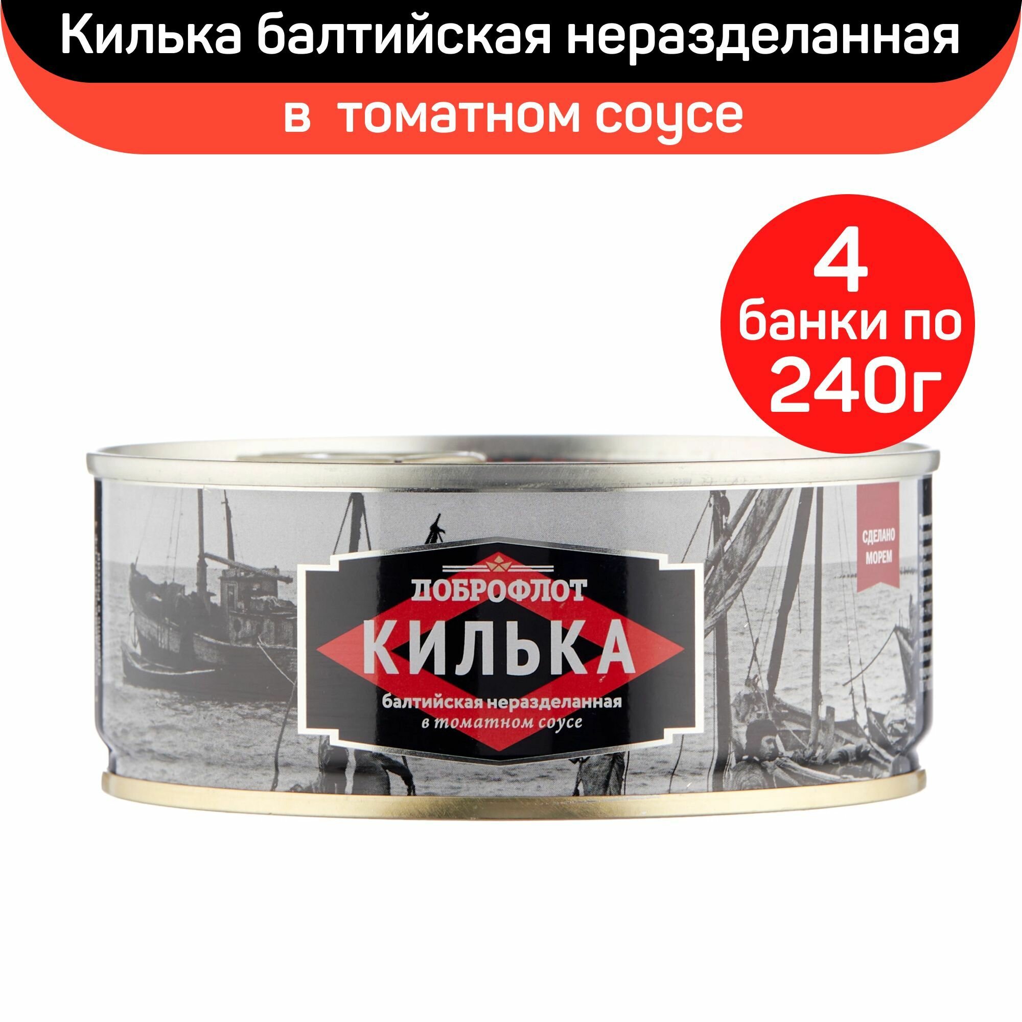Килька балтийская (шпрот) неразделанная в томатном соусе Доброфлот, 4 шт по 240 г информация: