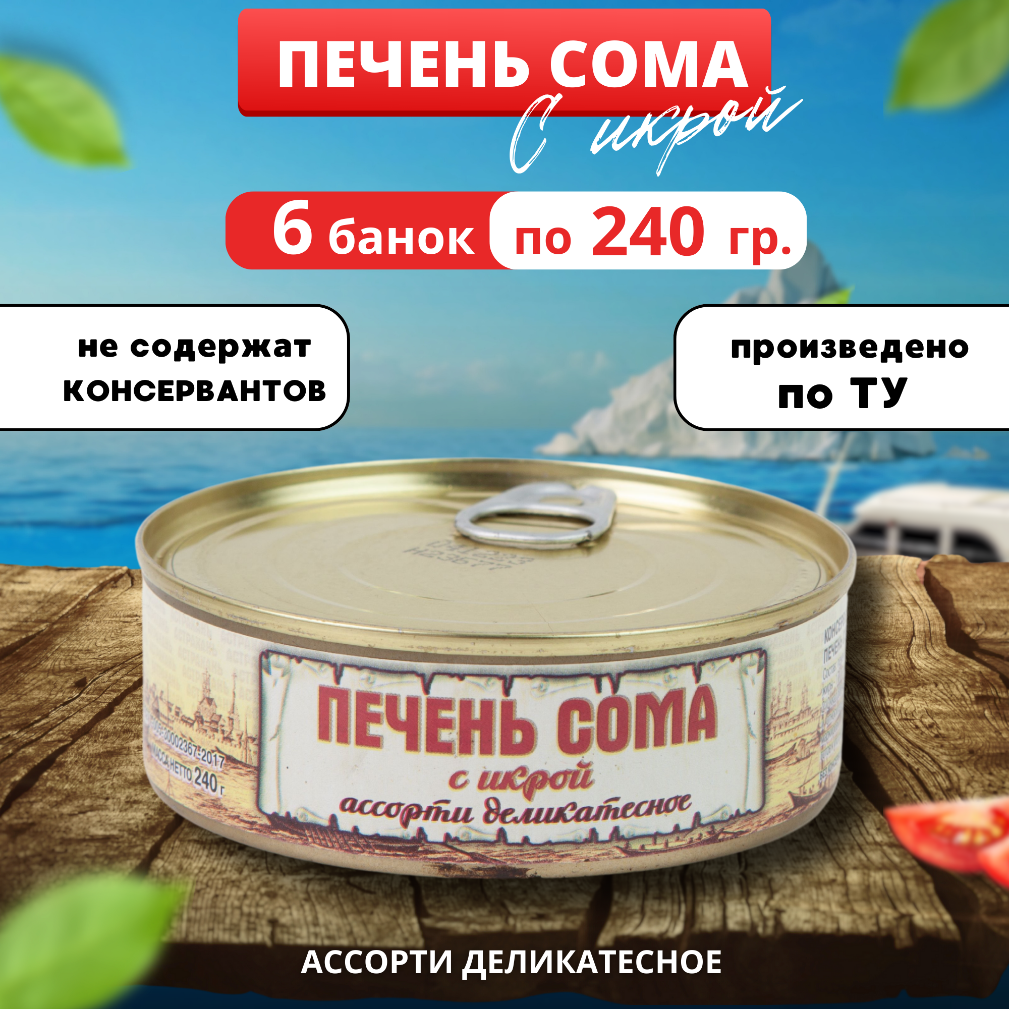 10 цен на Рыбные консервы, паштет печень сома с икрой 240гр 6 банок