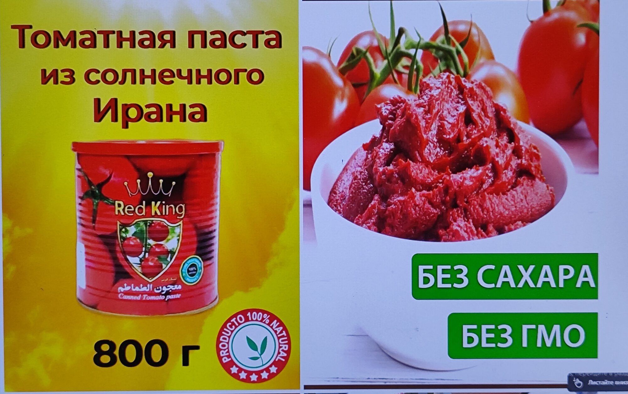 Томатная паста Иранская Red King 800 гр 2 шт. информация: