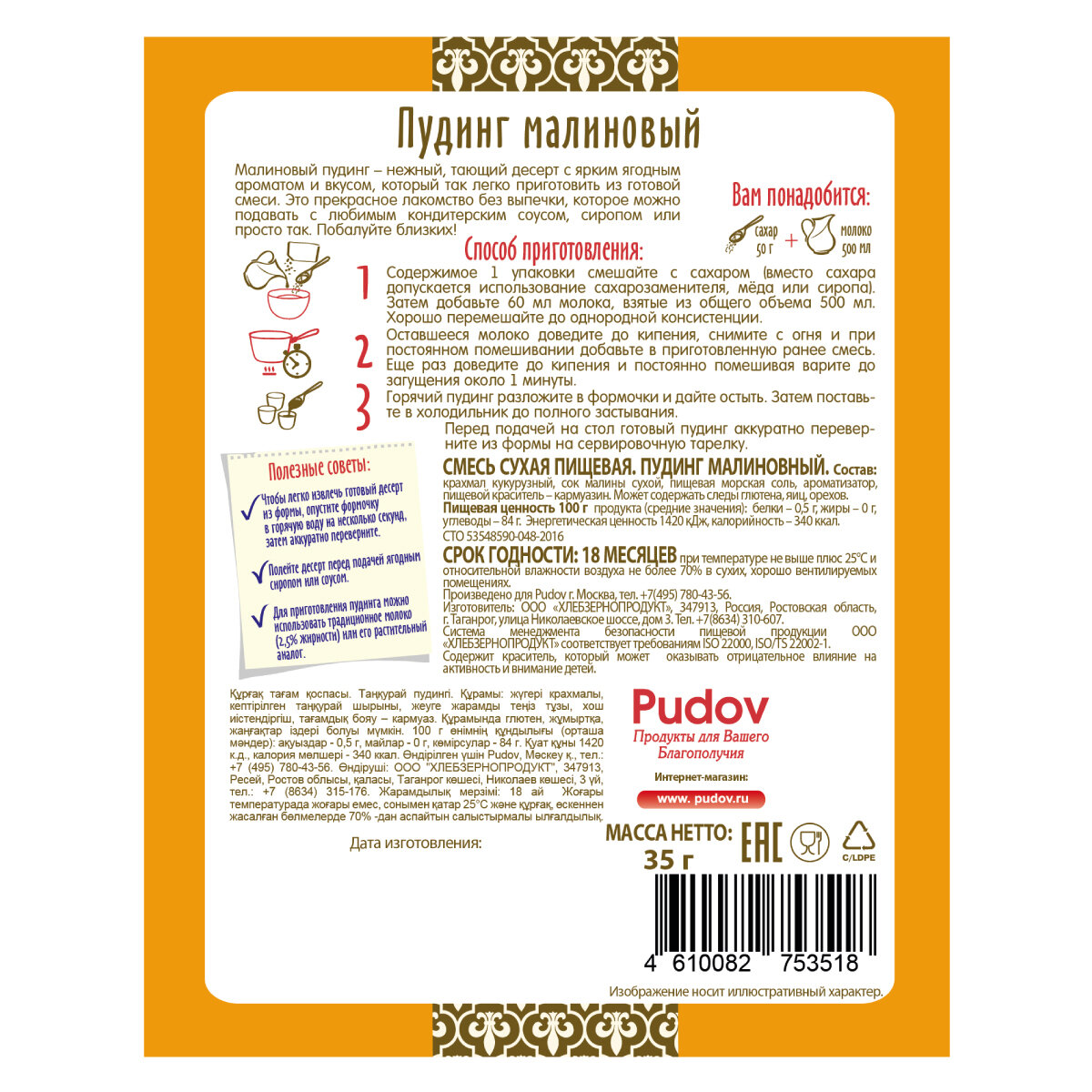 Смесь для приготовления десерта "Пудинг малиновый" С.Пудовъ, 35 г информация:
