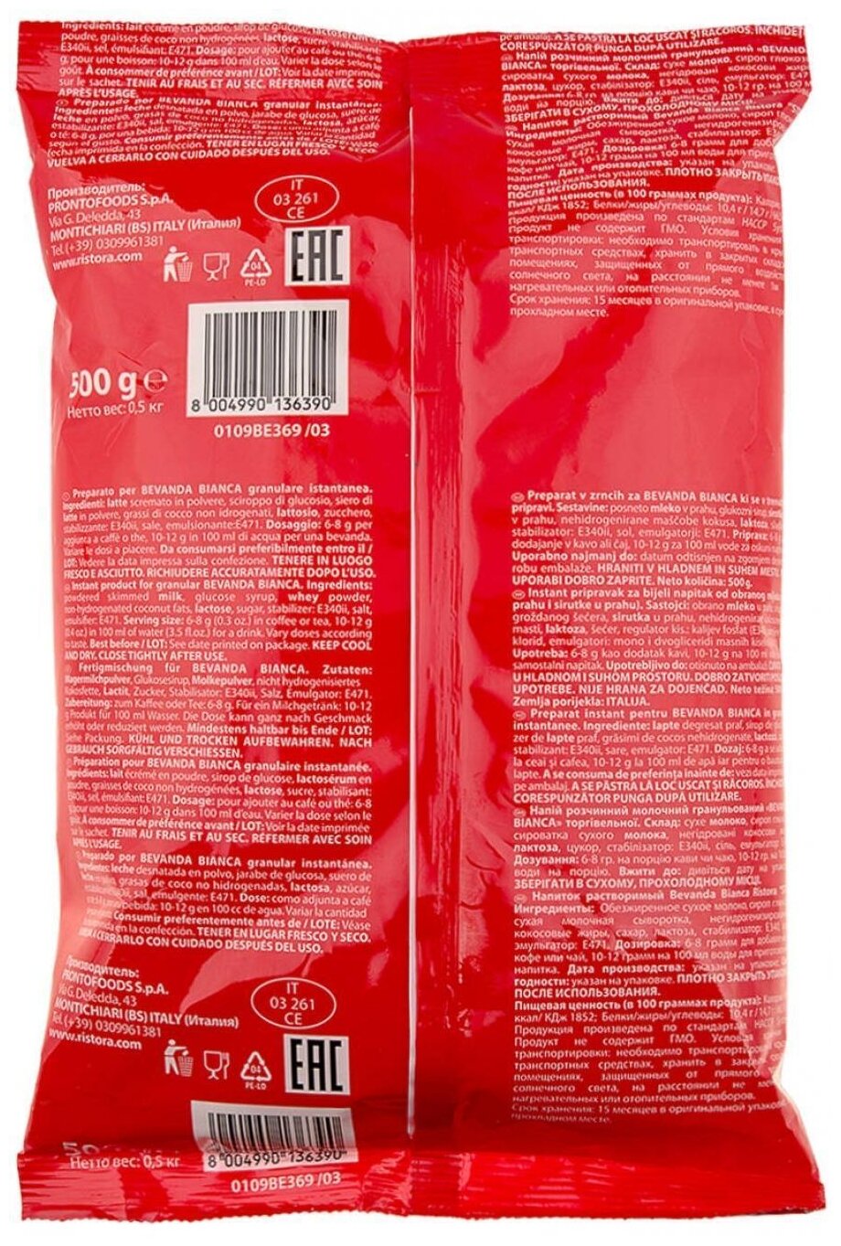 Молочный напиток Ristora STP (0,5 кг) информация: